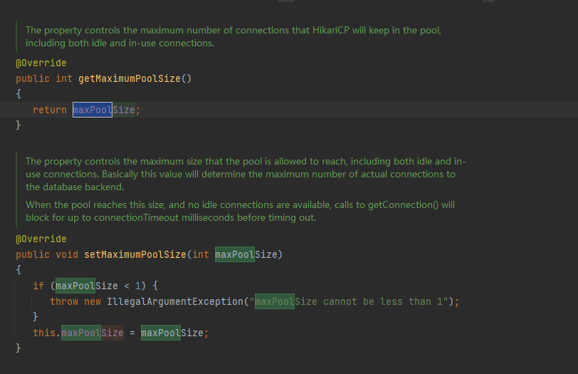 maxPoolSize 与 maximumPoolSize。类似的还有 minIdle 与 minimumIdle。到此配置不生效的问题解决~